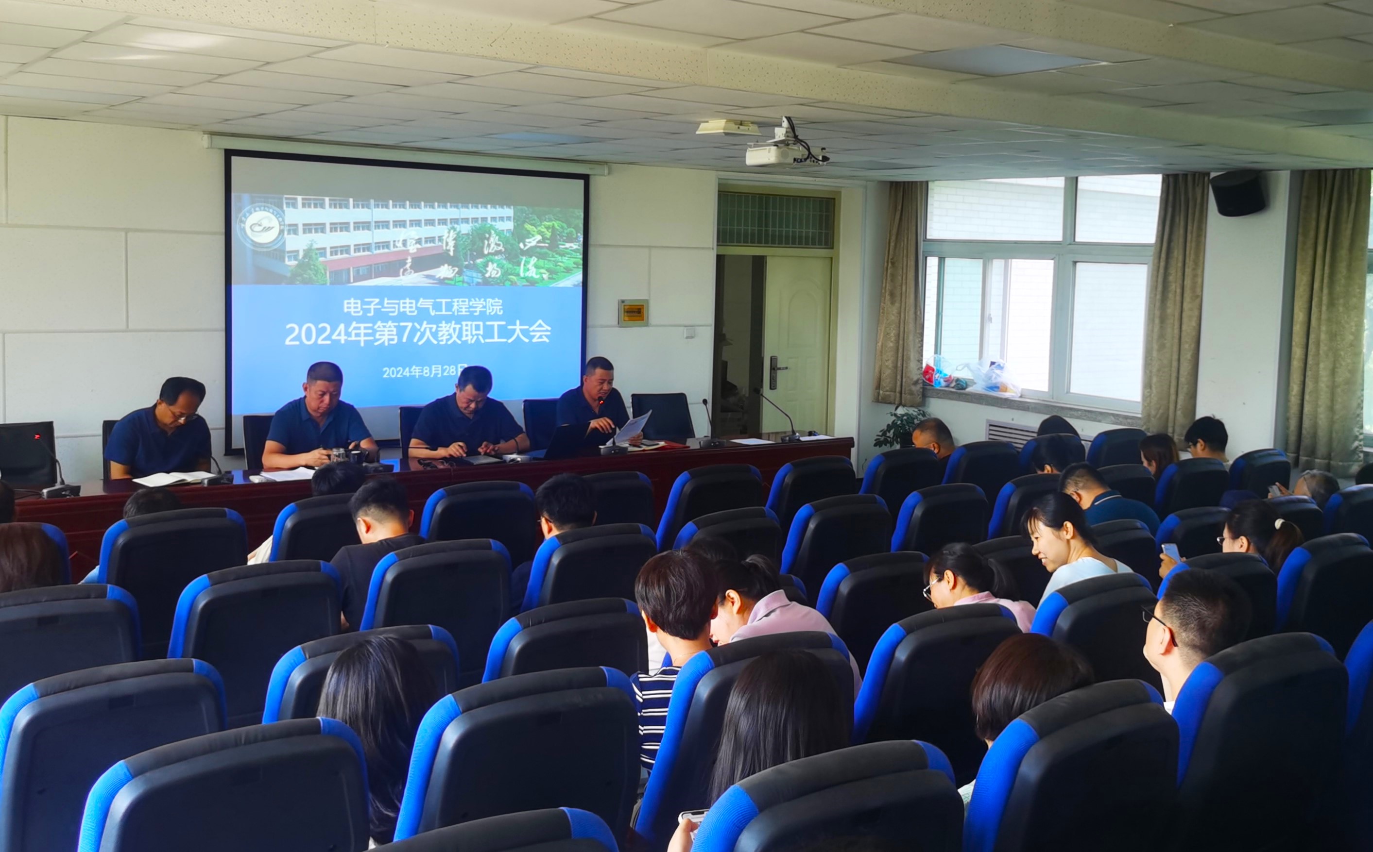 【电院讯 韩腾/文、图】为深入贯彻落实党的二十届三中全会精神,引领全院教职工更快更好融入新学年新学期各项公司产品和科研工作,8月28日,公司于怀远校区博远楼召开第七次全院教职工大会,安排部署2024年秋季学期工作。