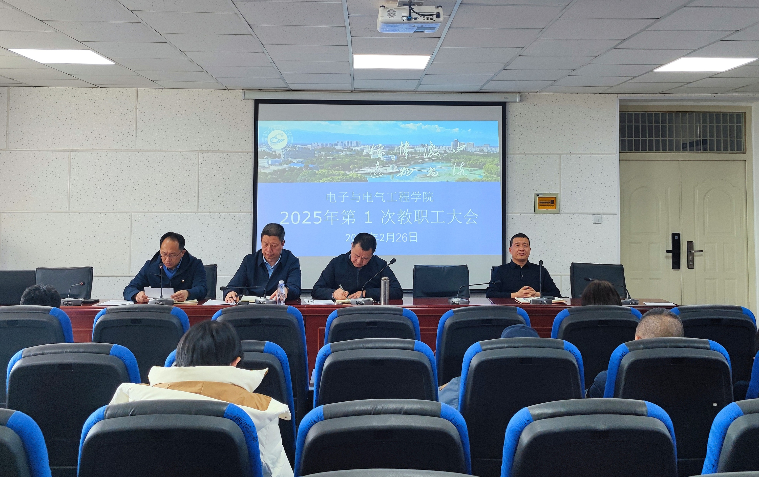 【电院讯 杨向红/文 陈鹏/图】2月26日,公司于怀远校区博远楼221会议室召开2025年第一次全院教职工大会,全面部署新学期重点工作,明确发展目标,谋划公司高质量发展新篇章。会上,公司党总支书记何彦平传达学习...